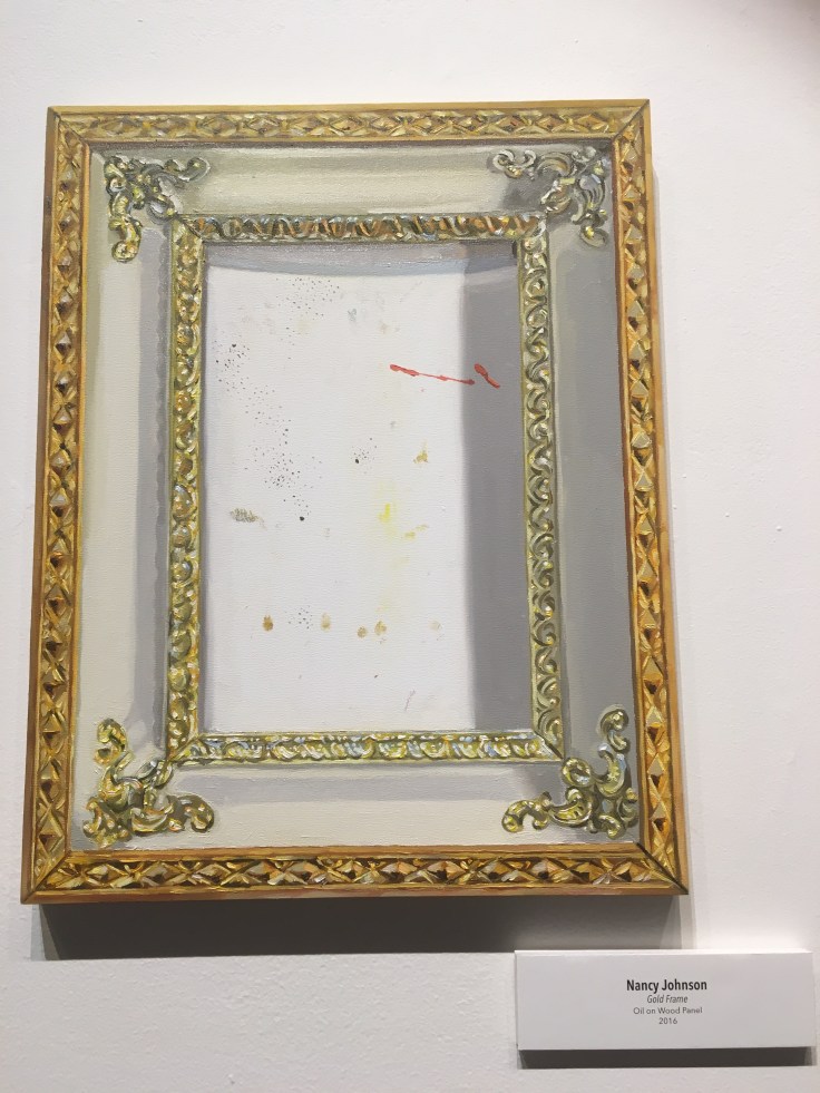 Interestingly, this artist also focused on the essential elements of framing a painting, so much so that she painted an empty picture frame on a panel without an image inside. This concept takes an approach that is opposite of “thinking outside the box” and enforces limits before the actual idea is born. It kind of reminds me of modeling in computational biology, where assumptions, limits and constraints need to be set before setting the key experiment in motion.