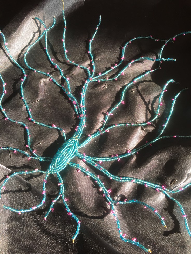I went back home and could not wait to get back to work on my cell that was trying to escape from its frame. The one I have written about in many of my previous posts. Last week I finally got a chance to stay home for half a day and finish it! It was daytime, and the sun shone brightly into the windows of our new apartment, still not covered with curtains or blinds. I was able to catch some gorgeous shots of the work in progress.