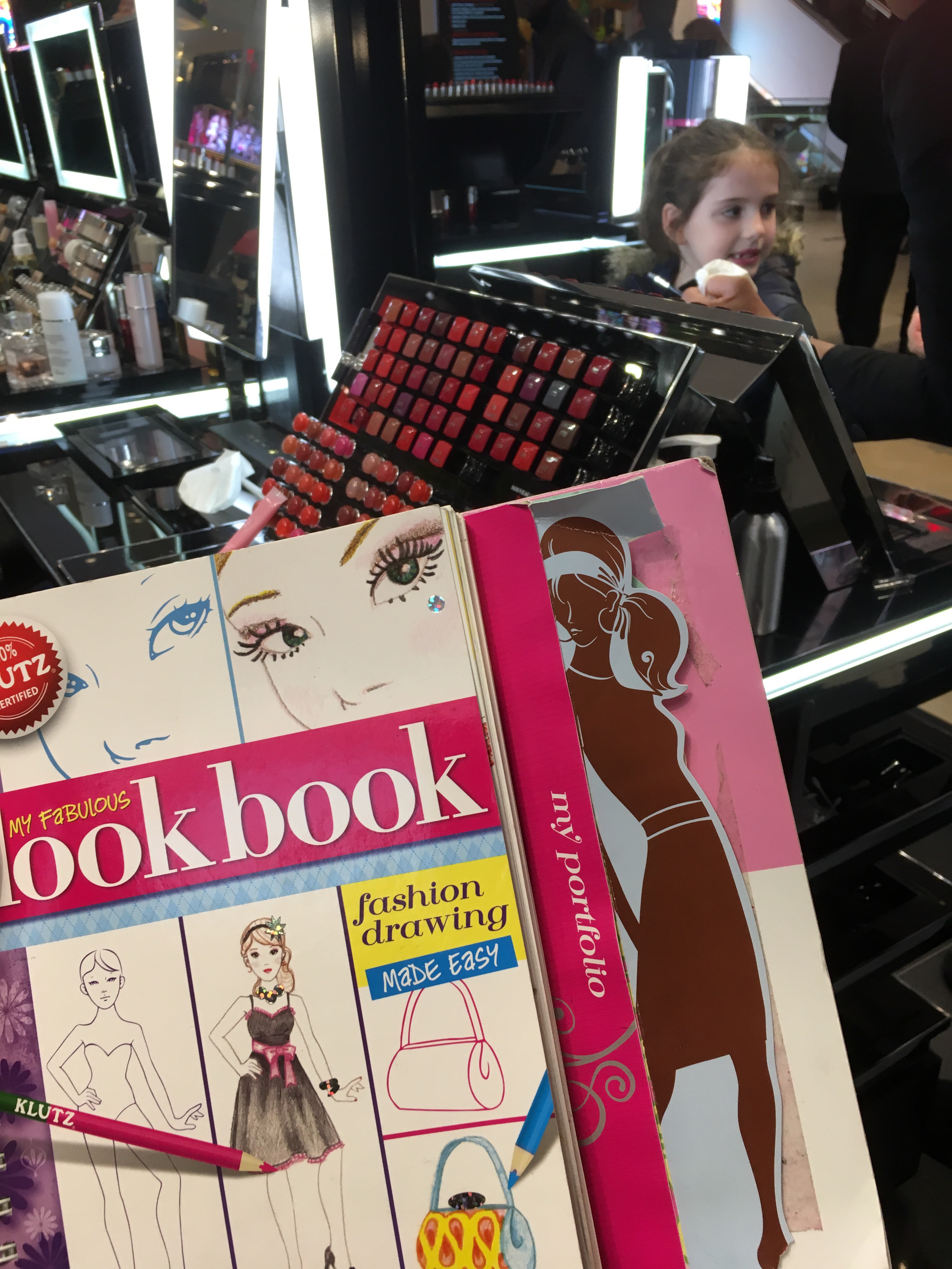 As we walked through the store, she did not pay much attention to the flowers. She was on a mission to find the right person to show her designs to. On the first floor, she made it through the perfume section and headed straight for the Dior makeup stand. She asked me to start a conversation with one of the makeup artists and began showing her drawings. Thankfully, the lady played along, complimented her drawings AND even offered to put some makeup on her. As I was standing nearby and admiring Elza’s courage and determination, the main highlight came. The lady asked Elza what she wanted to be when she grows up. The answer was “I will be a scientist, but fashion design will be my hobby”. Bingo! That’s my girl! It made me feel so emotional in light of the conversations of women’s ambitions from the previous evening! She was not going to pigeonhole herself…