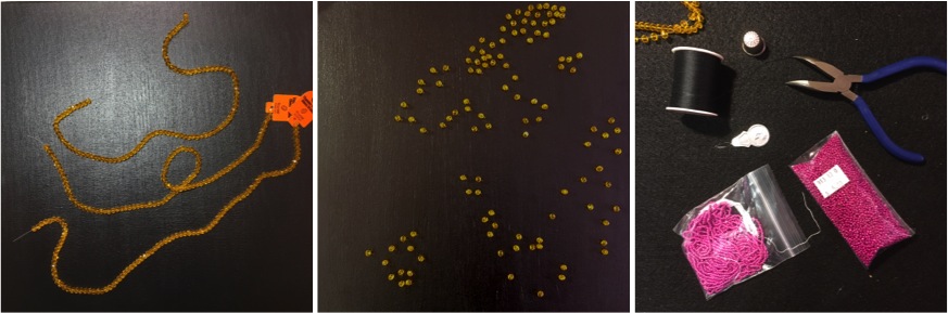 After settling on creating “Mapping Manhattan”, this week I finally got a chance to go out and buy some supplies, including a canvas and beads. I painted the canvas with black paint (though it ended up looking a bit like wood in the photo) to create the background that is typical for fluorescence microscopy images. When shopping for beads, I had an internal debate on whether I should stay true to my method of using small seed beads for recreating all “pixels” in the image; or if I should choose the bead type based on the shapes present in the actual image. I ended up choosing so called “rondelle” beads, which have multiple faces, to recreate the yellow nuclei scattered across the image. I also purchased bright purple beads for the occasional cells that Darcy pseudo-colored this way in the image. Unfortunately, the light blue beads that are required for the majority of the cells in the image were backordered.