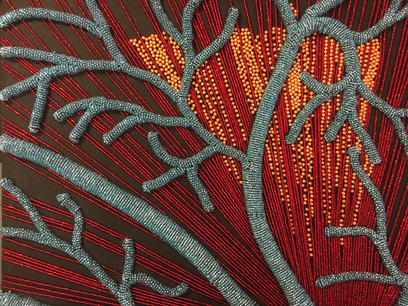 process. These orange beads are a bit larger than the seed beads that I typically use and they needed to be tightly packed.