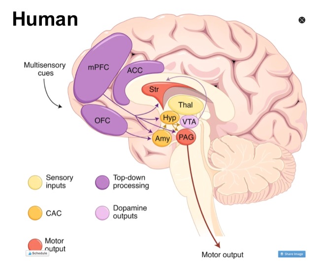 Interestingly though, humans have one large advantage. We have a much larger and better developed prefrontal cortex (PFC) that provides us with “top down” control of the CAC and allows us to suppress aggression.