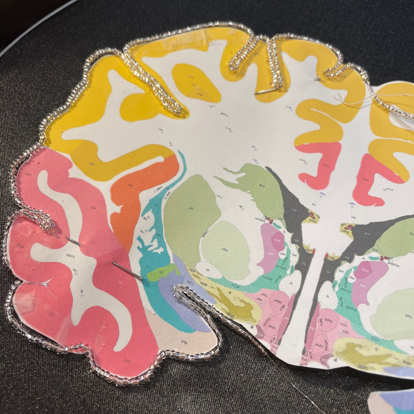 In my new project, I am planning to combine coronal sections of a brain and a beaded flower to represent a “Wilting Mind”. Let’s see how abstract it will seem.