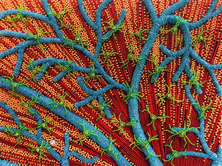 3-dimensional bead work on stretched canvas. Ready to hang. 14″ x 11″