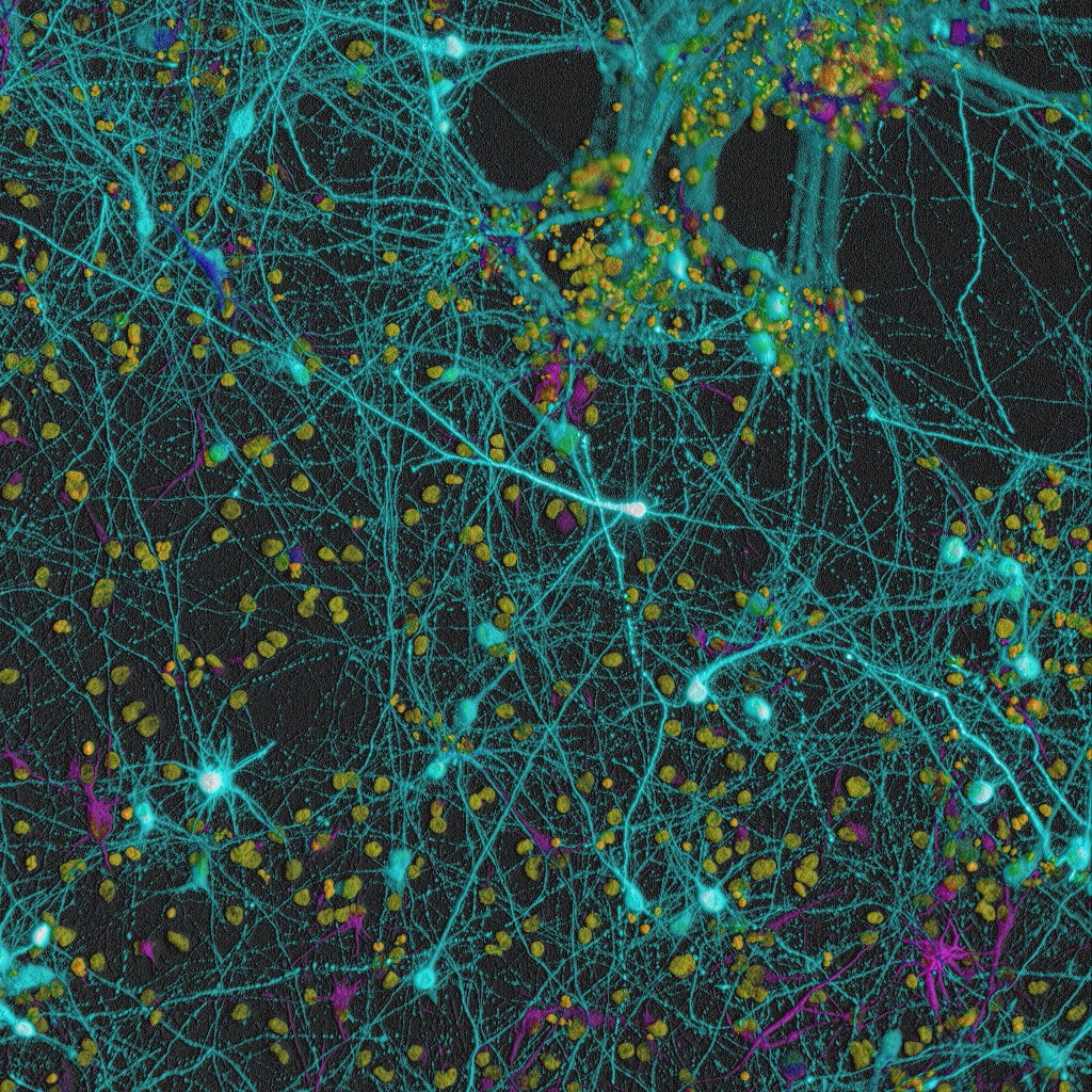 This project began with another image that I acquired in the lab – this time a dense network of neurons (nerve cells) grown in a dish. While I really liked the original image, it would have been close to impossible for me to recreate all the connections in beads, so I had to be selective in which connections to emphasize and which ones to omit.